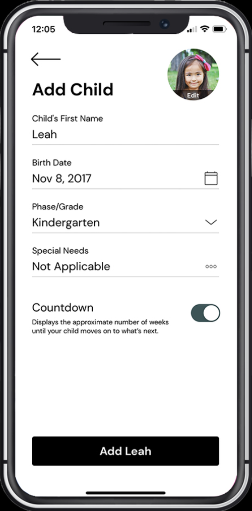 Once back in the app, you will be asked to add your children.