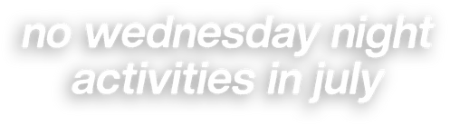 Due to the busy holiday season, youth and kids camps, and increased summer travel, all Wednesday night activities—including GT Kids, GT Youth, and adult small groups—will be on pause throughout the month of July. This intentional break gives families and volunteers a chance to rest and reset.