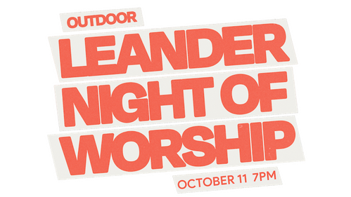 Join us for a special evening of worship outdoors! Invite your family, friends and neighbors for this night in Leander at 7pm. Our desire is to welcome people from all over the community together for a city-wide night of worship. We cannot wait to see you there!